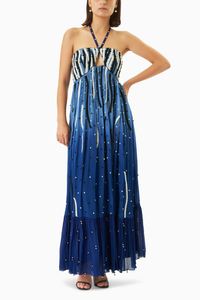 Inspired by the impressive plumes of the Vulturine Guineafowl, the Lupita Dress is a kaleidoscope of embroidery. It features a dainty halter neck, with beaded detailing all along its breezy silhouette. This is the perfect dress for special occasions.
