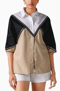 A tencel cotton three-colour shirt featuring stud detailing, adding a bold and trendy touch to your wardrobe.