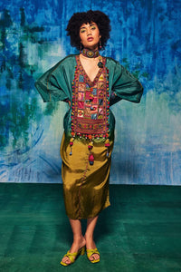 Fabric- Silk Color- Teal and Olive Components- 1 Product Code- SVECAPIUNITY58