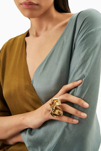 Referenced from botanical illustrations of the Magnolia flower, this gold dipped ring is a gorgeous accent piece !