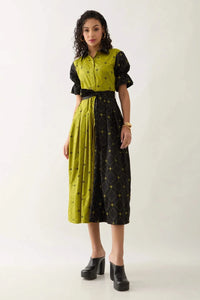 Fabric- Cotton Satin Color- Leaf, Black, Black, Leaf Crown Fit- Fit And Flared Components- 1 Product Code- SVESNOBSN-DR-MAG-CR-01