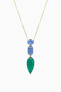 Make a bold statement with this mosaic pendant, with a stunning array of colors and geometric patterns inspired by Middle Eastern architecture. Featuring three semi precious stones in a variety of colours, this pendant are sure to turn heads wherever you go.Â