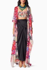 Featuring the Malaika Embroidered Bustier by Saaksha & Kinni's Nirah Collection. This square-neck bustier is adorned with intricate hand-embroidered mirror, tassel, pearl, and threadwork detailing, making it a statement piece that exudes elegance and craftsmanship.