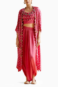 Malini Pink Bandhini Jacket with Blouse and Skirt