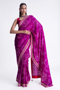 Mangenta Bandhani Silk Zardozi Embroidery Saree