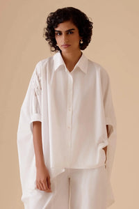 A riveting twist to everyone's favourite silhouette a kaftan. Our Manya kaftan's highlow style cut, ribbon detailing on the sleeve and semisheer floral cutwork details make this an elevated option for your everyday wardrobe! Pair it with our very own cargo pants for a complete look.