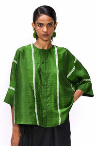 Fabric- Handwoven Silk Color- Cactus Components- 1 Product Code- SVEMEDI25PFMARGINSHIRTCACTUS