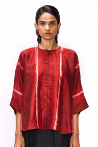 Fabric- Handwoven Silk Color- Flame Components- 1 Product Code- SVEMEDI25PFMARGINSHIRTFLAME