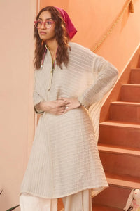 The Margo Shirt is crafted from handwoven Chanderi, featuring intricate piping, texturing, and hand-beaded details. This beautifully designed shirt combines elegance and texture, making it a sophisticated addition to any wardrobe.