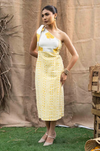 Introducing Marot, a bold and stylish printed midi dress that combines vibrant floral and geometric patterns. This one-shoulder fitted dress is both flattering and eye-catching, adorned with intricate lace work for a touch of elegance. The side slit adds an element of allure, making Marot the perfect dress for any occasion where you want to stand out with confidence and style.