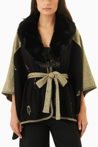 Ma de in a soft blend of wool a nd ca shmere, the Ma riella ca pe is embellished with bea utiful sequins a ll over - for tha t a dded spa rkle.