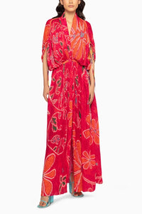 Featuring the Marigold Bandhani Pleated Kaftan with Drawstrings by Saaksha & Kinni's Eclat Collection. This stunning pink and orange cotton silk kaftan features a marigold Bandhani print, part hand-micro pleats, a drawstring waist, adjustable sleeves, and customizable side slits for a stylish, flattering fit.