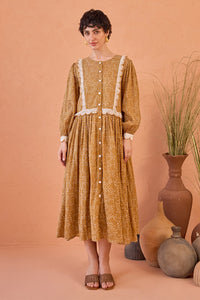 Fabric- Cotton Mulmul, Slip- Cotton 60-60 Color- Tan Details- Confetti Dot Prints Dress Length- 48" Components- 2 Product Code- SVETAROSP1621