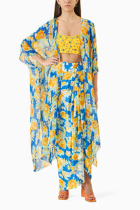 Composition - Organza Color - Blue Yellow Multi Print Embroidery Details - Digitally Printed, Hand Embroidered Swarovski Product Code - SVERIGUSRT009