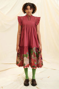 Introducing a stunning fusion of tradition and modernity. This enchanting dress features intricate nature - inspired motifs meticulously crafted across the fabric, creating a captivating visual appeal. The smocking detail adds texture and charm to the silhouette, while the delicate and ruffled cap sleeves lend a touch of elegance and femininity.