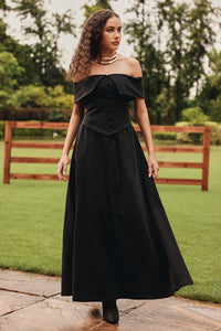 Off shoulder corset dress. The bottom flare of the dress can be removed and the off shoulder denim corset can be worn seperately.