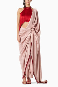 Composition: Silk Color: Baby Pink With Red Fit: This sari fits true to size, takes the shape of your body as it is a drape. The sari is high waisted, get it according to your high waist size. Components: 1 Product Code: SVE43188-3241601PNKRD
