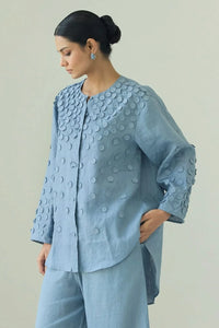 Step into timeless elegance with the Masie Circles shirt—crafted with care and a touch of charm. It elevates your vibe from day to night with effortless sophistication.