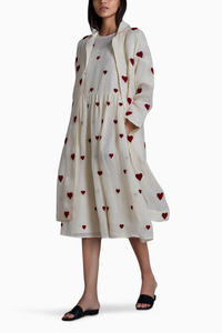 Give your festive outfit a fashionable spin with our star design of the season! The Teen Patti Cover Set ! Made in pure linen this ensemble features an embroidered jacket and dress. The dress and jacket have side pockets, also handwoven cotton full-length inner comes with the set.