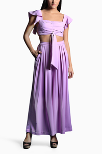 Featuring the Band Crop Top with Pleated Pants Set by Swatee Singh in a chic Mauve hue. Crafted from luxurious heavy crepe fabric, this set is a perfect blend of style and comfort, offering a modern and sophisticated look.