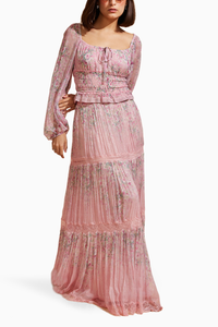 Featuring Mauve Muse Crop Top with Skirt Set by Roseroom. The set has a Mauvish Printed Rooched Crop Top with long length Skirt. Crafted from French Chiffon, adorned with printed embroidery and delicate laces, it offers a standard fit for a stylish and contemporary ensemble.
