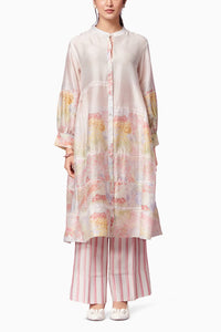 Composition- Pure chanderi Silk with Cotton Inner Color- Ivory and Multi Fit- Kurta- True Fit Trouser- Relaxed Components- 3 Product Code- SVEMOHRSS24MS1D1TW