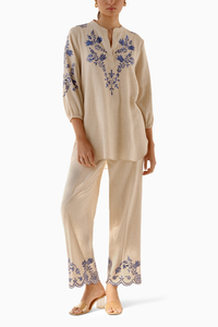 Step into effortless elegance with our Linen Coord set, adorned with delicate floral embroidery in thread. This set exudes charm and sophistication, perfect for any occasion where you want to make a statement with style.