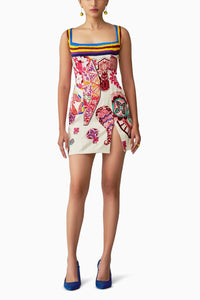 Featuring Megan Paisley Print Square Neck Short Dress with Side Slit by Saaksha & Kinni, this stunning satin dress features a paisley print, a flattering square neckline, and a customizable side slit for a personalized touch. Perfect for a bold, chic look.