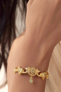 Sustainably made - crafted from recycled brass, reclaimed from industrial use, and processed to be fit for high-grade use and to be 100% allergy-free for all skin types. 22-karat plated atleast 4-5 times over normal plated jewellery