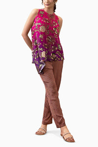 The Pink Mehr Embroidered Asymmetrical Top is a modern and stylish piece featuring delicate embroidery, with an asymmetrical cut that adds a unique flair. Paired with straight pants in soft crepe, this ensemble combines comfort and sophistication. Perfect for evening events or semi-formal occasions, it offers a chic, contemporary look with a touch of elegance.