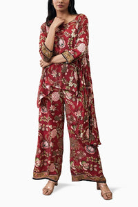 Mehr Embroidered Asymmetric Red Co-ord Set