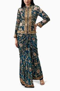 Green Mehr Embroidered Jacket With Drape Skirt