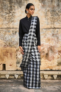 Metallic Check Sari Skirt