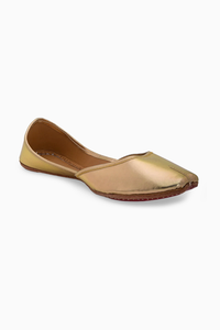 Featuring Metallic Gold Juttis by 5 Elements by Radhika Gupta. A pair of metallic Gold juttis, easy to Cordinator with any outfit!