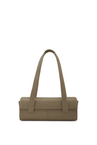 Handcrafted crossbody and top-handle bag. An elongated cylindrical silhouette, crafted from supple Nappa leather with a refined flap closure. Equipped with an adjustable crossbody strap.