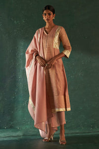 Midas Old Rose Tissue Stripes Kurta Set
