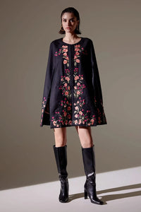 Featuring the Midnight Black Bloom Cape Dress by ANAHE, this stunning dress combines a flowing cape with intricate thread embroidery. Designed to exude elegance and grace, it offers a perfect blend of contemporary style and timeless sophistication.