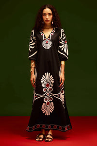 Featuring the Midnight Blue Cotton Botanical Maxi Dress, a relaxed-fit silhouette crafted from cotton poplin. Adorned with thread embroidery inspired by nature, this dress blends effortless comfort with timeless elegance.