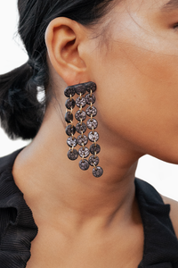 The midnight blue Droplet Earrings exude timeless elegance. Embellished with blue leather, these earrings are delicately layered for a luxurious, flowy aesthetic that is sure to make a sophisticated statement.