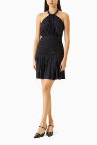 Midnight Blue Glitter Jersey Dress With Embellished Rope Neck