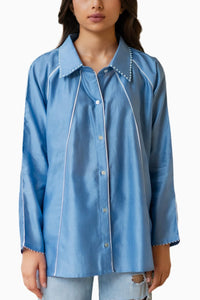 Featuring Midnight Blue Harper Shirt by URAIB from The Colored Castle Collection. Tailored from Chanderi fabric, this shirt boasts a bold and stylish look with its captivating Blue Hue, ensuring a distinctive wardrobe essential.