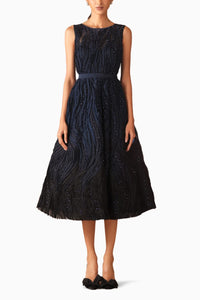 Presenting Shriya Som's midi dress from the Chrysalis Collection, meticulously handcrafted with textured detailing in a mesmerizing ombre pattern. Adorned with sparkling crystals, this piece evokes the beauty of a captivating natural vista.