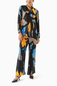 Elegant meets edgy through this midnight black floral printed co-ord crafted in stunning vegan silk fabric this trans seasonal piece is a statement. With a relaxed fit shirt, front button exposure and digital print in floral pattern is an interplay of colours. Matched with straight trousers and side pockets this piece is versatile and can be styled in different ways. With a formal fit, it can be paired with heels for a festive look.