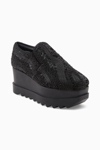 Where will you be when the clock strikes 12? We’ll follow the trail of magic your Midnight Magic wedge sneakers leave behind to find you. This pair is for the ladies who love all things dark and mysterious. It is handcrafted in black microsuede and embellished with black beads, sequins, and crystals. You can never wear too much black, and theseshoes prove just that. Style them with your evening gowns, rich Indian textiles, and other ensembles that radiate finesse and elegance. When the clock strikes 12, we hope to find you having the time of your life! The artisans of Anaar take 22 hours to carefully construct this pair.