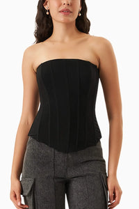 Featuring Midtown Strapless Corset by Anahe, this black mesh corset top offers a bold, fitted silhouette with a strapless design. Perfect for layering or standout solo wear, it brings edgy sophistication to any outfit.