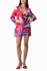 Millie Ikat Print Pleated Sweetheart Mini Dress & Oversized Blazer
