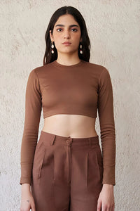 A modern and sleek design, the Zero Neck Crop Top features a minimalist zero neckline for a bold look. The cropped length offers a flattering silhouette, while the back metal zipper adds an edgy touch. With its slim fit, this top is perfect for pairing with high-waisted pieces or layering under your favorite outerwear.