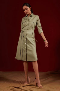 Our classic shirt dress, complete with front patch pockets and a matching belt, is now available in mint. What we love about this style is that it also doubles up as a light layer.