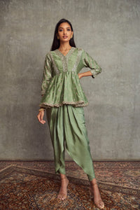 Mint Green Embroidered Peplum Top and Dhoti Pants