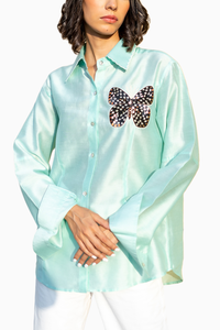 Featuring Mint Green Surfer Shirt by URAIB. Meticulously crafted from Chanderi fabric, this shirt in soothing Mint Green embodies a perfect blend of style and comfort for a contemporary look.